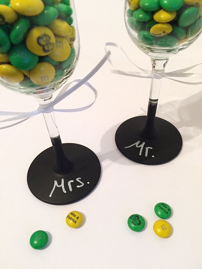 Wie versprochen kann ich nun auch die fertige Dekoration zeigen… Hier hatte ich bereits schon das fast fertige Tischkärtchen gezeigt. Nun kamen noch die bedruckten m&ms dazu…