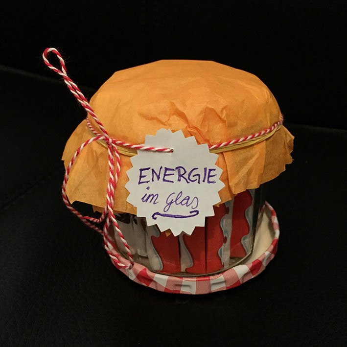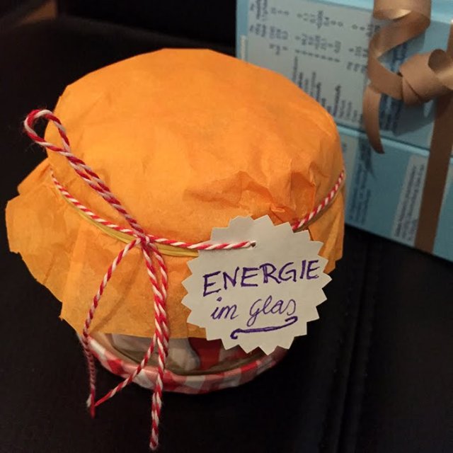 Eine Freundin hat bald Geburtstag, sie möchte natürlich dass man nichts mitbringt, aber irgendwie finde ich dass dann doch immer etwas doof und nehme trotzdem was kleines mit… da sie junge Mutter ist kann sie Energie sicherlich gut gebrauchen – also schenke ich ihr Energie im Glas! Das ist auch ganz einfach gemacht: