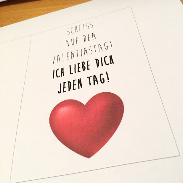 Wie steht ihr denn zum Valentinstag? Ich find ihn zwar ganz ok und bekomme natürlich gerne was geschenkt – aber irgendwie ist es doch schöner wenn man immer mal wieder was bekommt – deshalb kriegt mein Weltbester Mann schon morgen die Karte… 😉