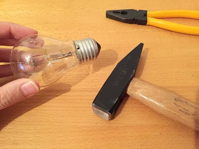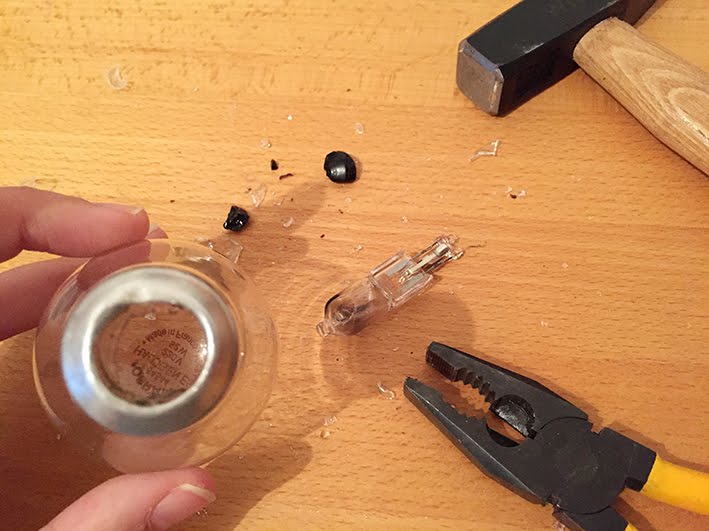 Als erstes müsst ihr das Innenleben der Glühbirne entfernen.