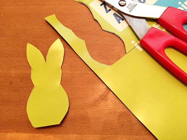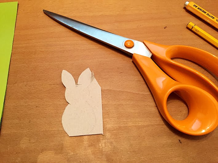 Die Osterhasen-Vorlage schneide ich aus einem Stück Karton aus…