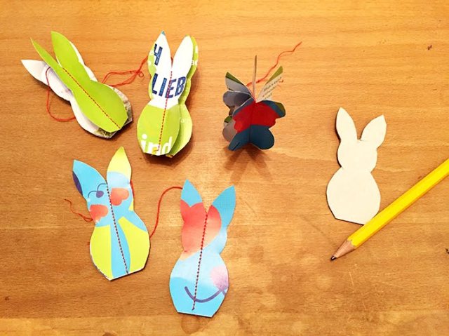 Da es ein bereits gefalteter Prospekt ist habe ich bereits meine drei Osterhasen ausgeschnitten.