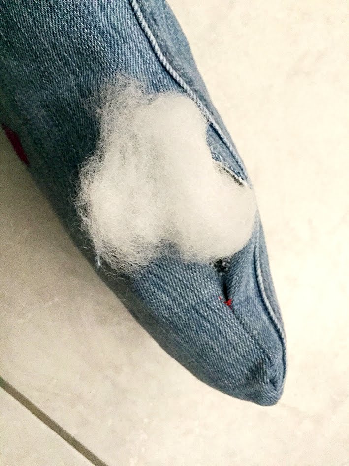 Und sie dann mit Bastelwatte (waschbar) gestopft und die Öffnung von Hand zugenäht.