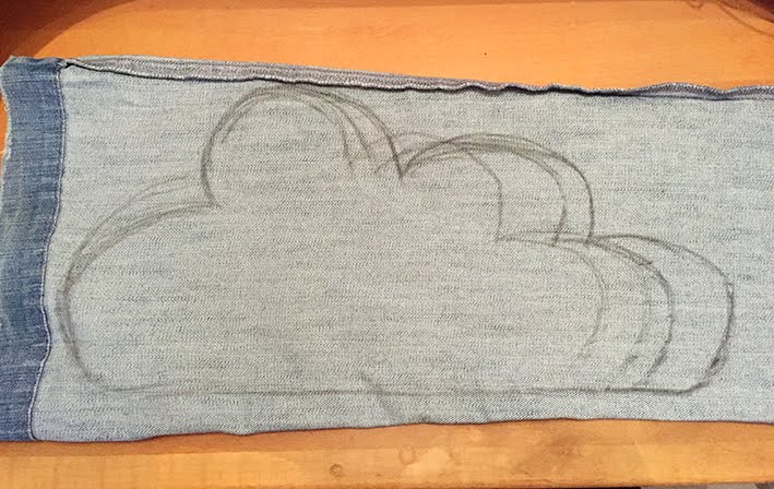 Auf die Rückseite des Stoffes habe ich die Form der Wolke gemalt…
