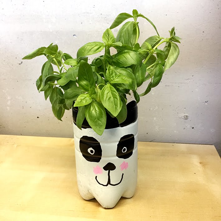 Der Winter ist nun hoffentlich definitiv vorbei und somit höchste Zeit den Frühling gebührend zu Begrüssen! – obwohl es heute schon wieder regnet… Wie wär’s mit einem süssen Pandabären der euch in der Küche anlacht? Den könnt ihr ganz einfach aus einer alten PET-Flasche selber machen! Reinpflanzen könnt ihr natürlich was ihr wollt… ich hab für mich Basilikum genommen.