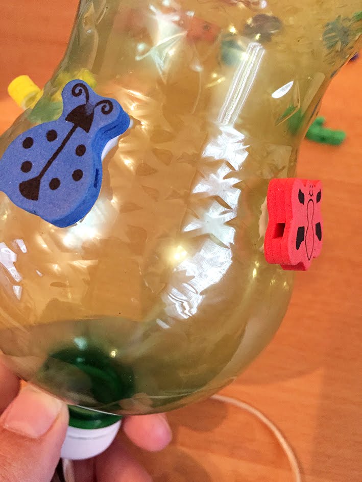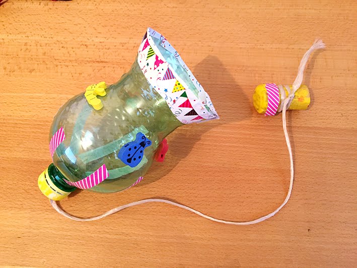 Könnt ihr euch noch an den Post vom Panda-Topf erinnern? Dort hab ich geschrieben dass ihr den oberen Teil der Flasche nicht wegwerfen sollt, daraus kann man nämlich ein tolles Spiel für Kinder machen – das Fangspiel: