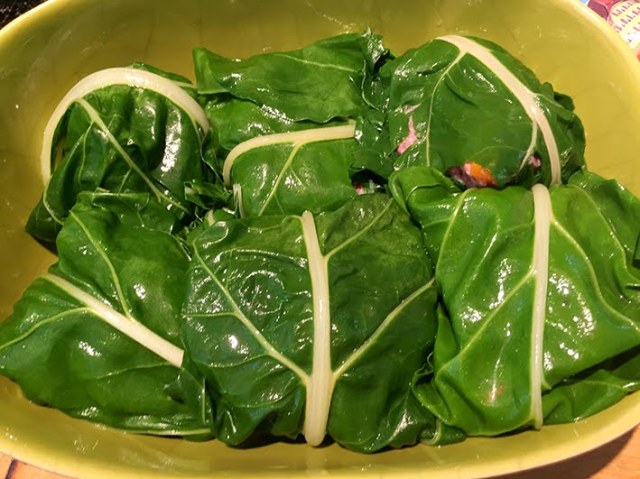 Dieses Jahr habe ich mir zum ersten Mal einen Krautstiel-Setzling gepflanzt und es scheint ihm super zu gefallen in unserem Hochbeet. Da ich so viele Blätter habe, musste ich mich auf die Suche nach Rezepten machen und ich bin auf Krautstiel-Hackfleisch-Wickel gestossen – hier das Original-Rezept von swissmilk. Meines hat ein paar kleine Abweichungen, da ich nicht alles in der Küche hatte…