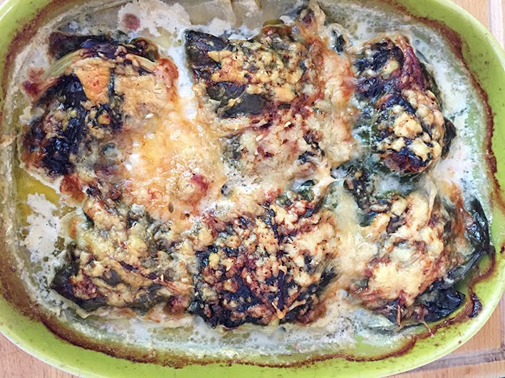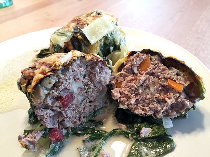 Dieses Jahr habe ich mir zum ersten Mal einen Krautstiel-Setzling gepflanzt und es scheint ihm super zu gefallen in unserem Hochbeet. Da ich so viele Blätter habe, musste ich mich auf die Suche nach Rezepten machen und ich bin auf Krautstiel-Hackfleisch-Wickel gestossen – hier das Original-Rezept von swissmilk. Meines hat ein paar kleine Abweichungen, da ich nicht alles in der Küche hatte…