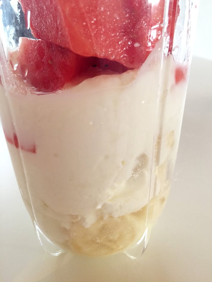 Banane und Wassermelone in Stücke schneiden. Mit dem Joghurt in den Mixer geben, mixen, in die Formen füllen, fertig!