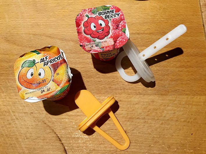 Natürlich gibt es unendliche Möglichkeiten selber Glace zu machen – die einfachste ist wohl kleine «Frutchzwerge» zu nehmen, ein Glacestengel reinzustecken und in die Gefriertruhe zu stecken…