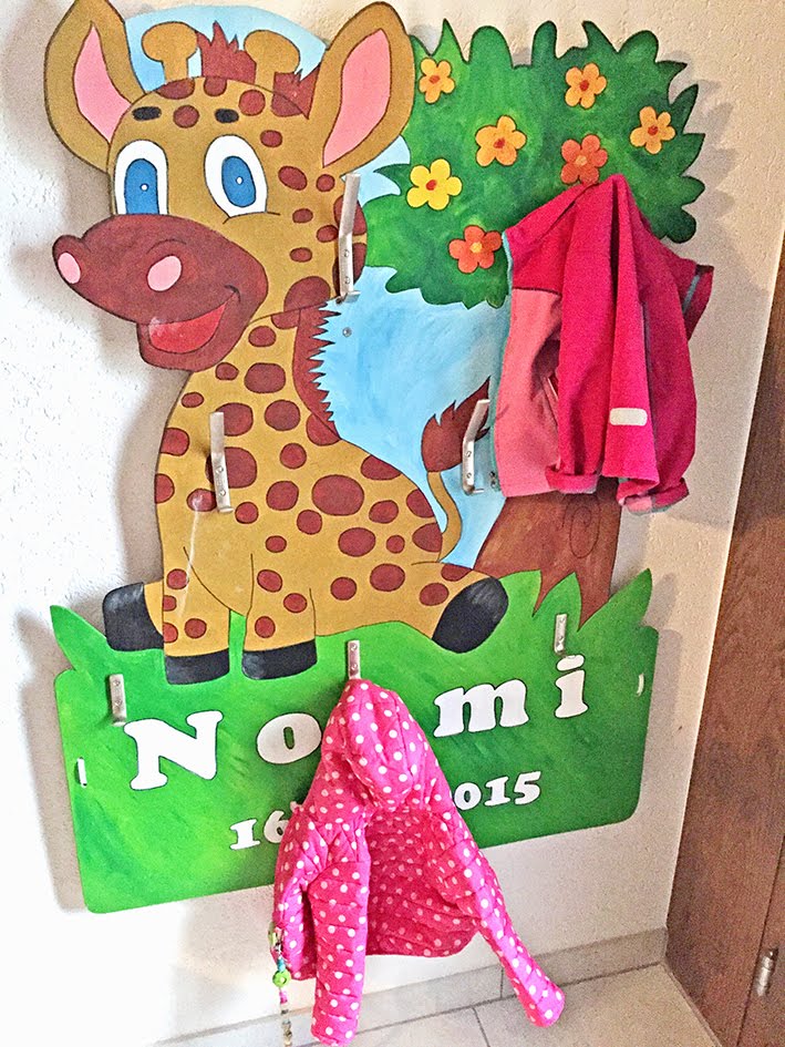 Die Tafel unserer kleinen Maus hat nun über ein Jahr am Terrassengeländer gehangen. Da wir vor kurzem einen Carport angebaut haben, musste sie allerdings weg – ganz weg – dafür ist sie definitiv zu schade! Deshalb haben wir sie umfunktioniert zur Kindergarderobe! Passend zur kommenden Jahreszeit, wo man die Jacken wieder häufiger braucht! Alles was ihr dazu braucht sind ein paar passende Haken und das passende Werkzeug um diese zu montieren – dazu hatte ich zum Glück Unterstützung von meiner besseren Hälfte!