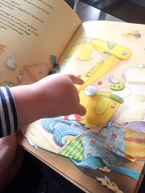 Lange Zeit wenn ich mit meiner kleinen Maus ein Buch anschaute, kam ich gar nicht dazu es in irgendeiner Weise vorzulesen. Sie blätterte ständig hin und her und kaum hatte sie ein Buch geholt, schloss sie auch schon den Deckel und holte das nächste.