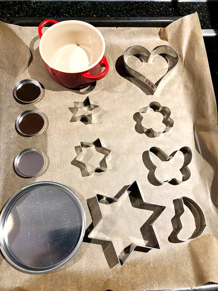 Die Scheiben sind beim Starter-Set dabei, das andere sind ganz normale Plätzchenförmchen