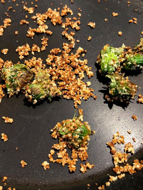 Etwas Paniermehl darüber streuen und das Ganze ein bis zwei Minuten braten – fertig!