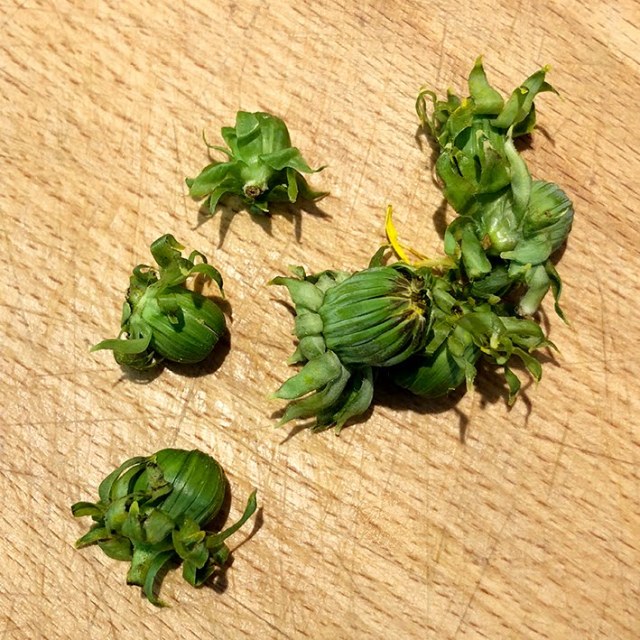 Die noch geschlossenen Löwenzahnblumen, also die Knospen kann man übrigens auch wunderbar verwenden! Ich war anfangs ziemlich skeptisch, nachher aber positiv überrascht!