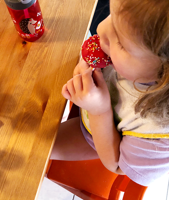 Wenn die Glasur nicht für alle reicht, sieht es auch toll aus einfach mit ein paar „Linien“ über die Pops zu fahren.