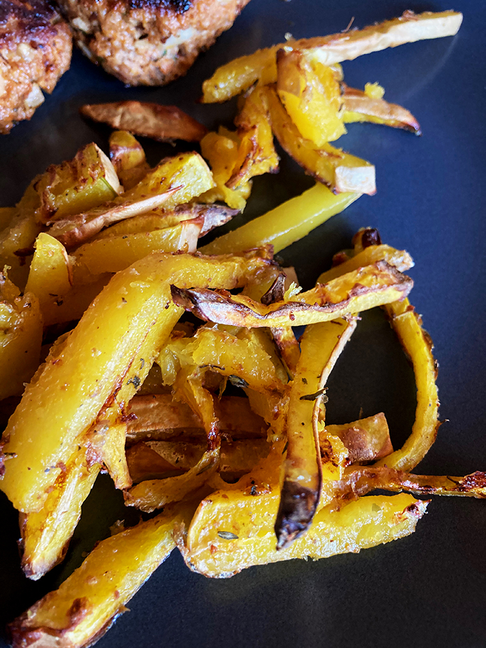 Dieses Jahr habe ich zudem ein anderes Kürbisrezept ausprobiert und die ganze Familie war begeistert: Kürbis Pommes!