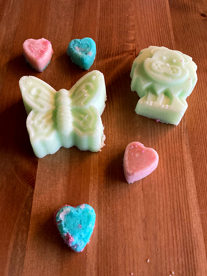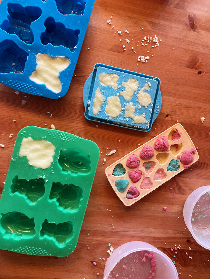 Wir haben die Masse in verschiedene Portionen unterteilt damit wir sie unterschiedlich einfärben konnten.