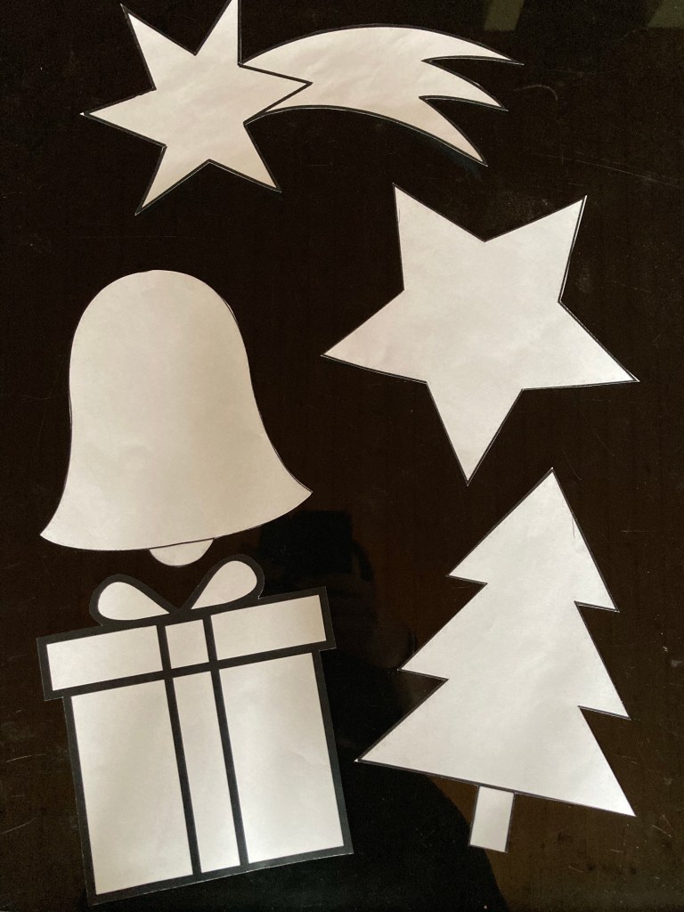 Wir haben heute weihnachtliche Fensterbilder gemacht – wie immer ziemlich einfach gehalten und somit geeignet auch schon für kleine Kinder!