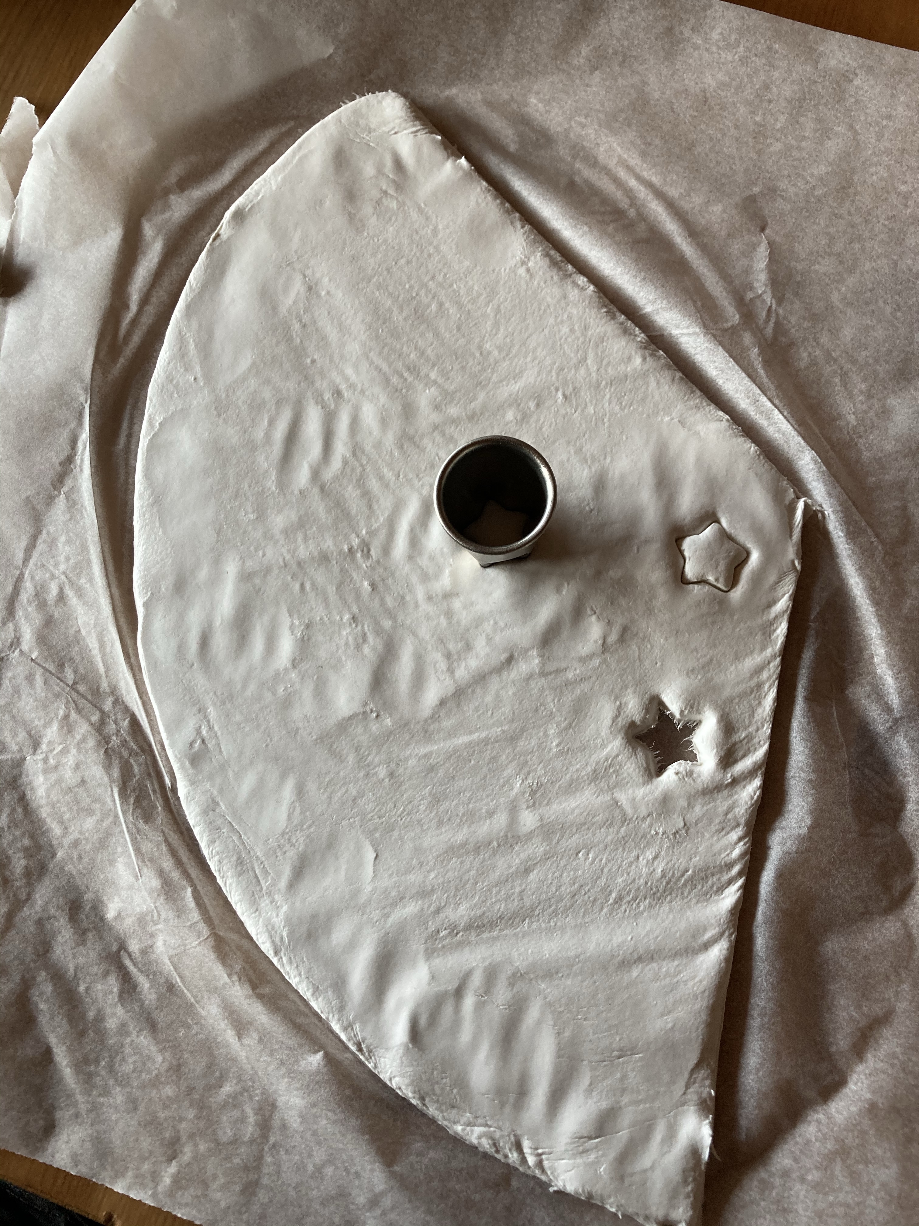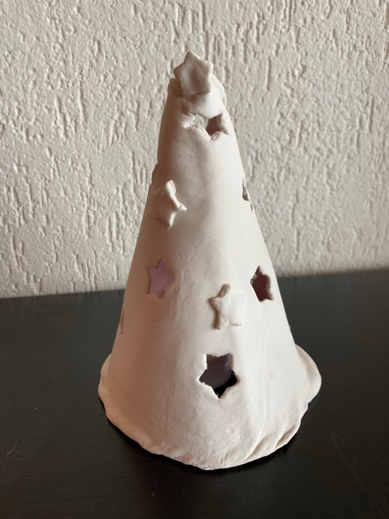 Nach belieben ein Muster aus Sternen ausstechen. Die Form um den Papierkegel formen und gut trocknen lassen – fertig!