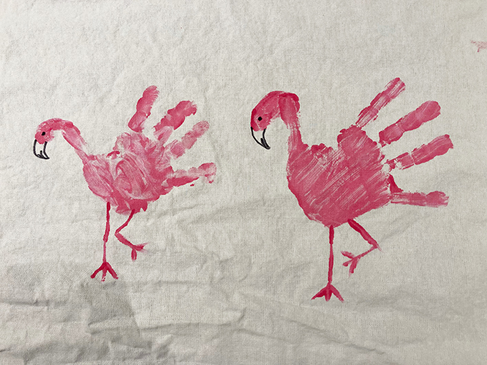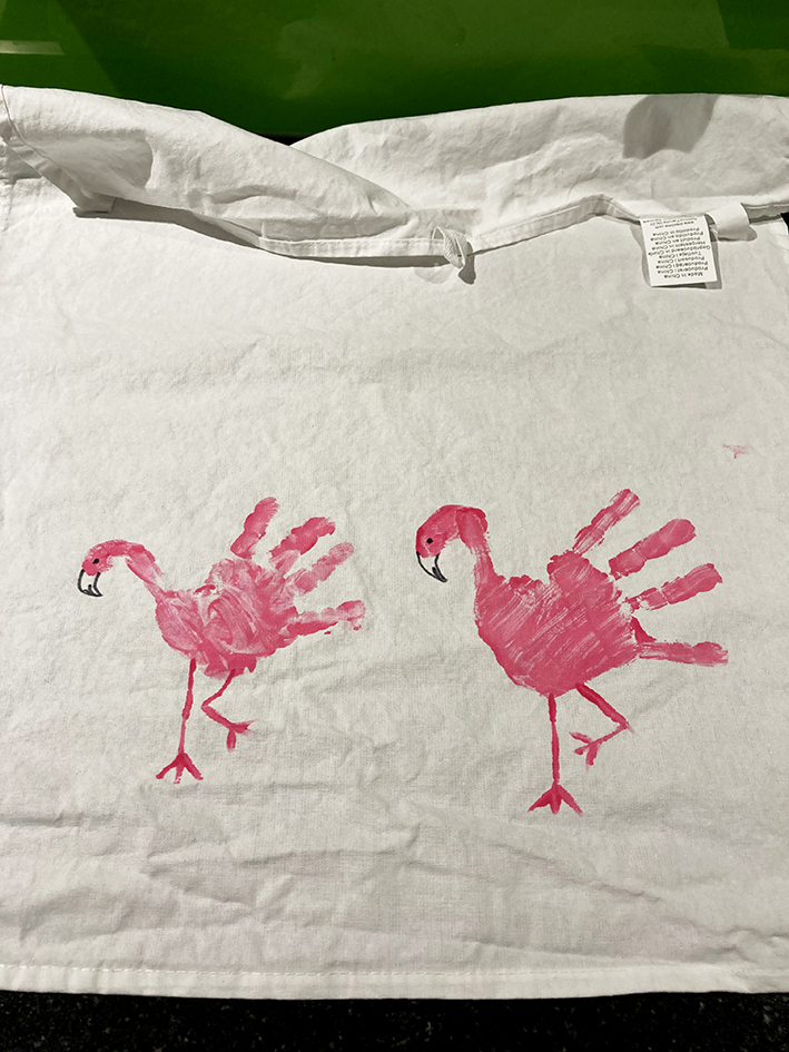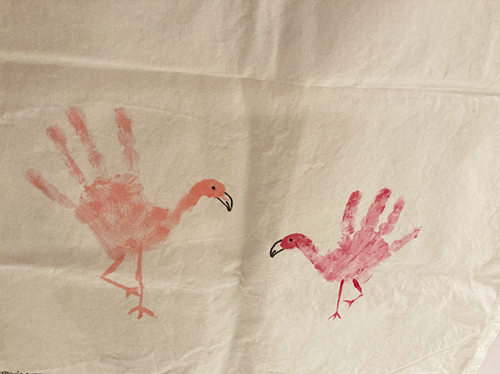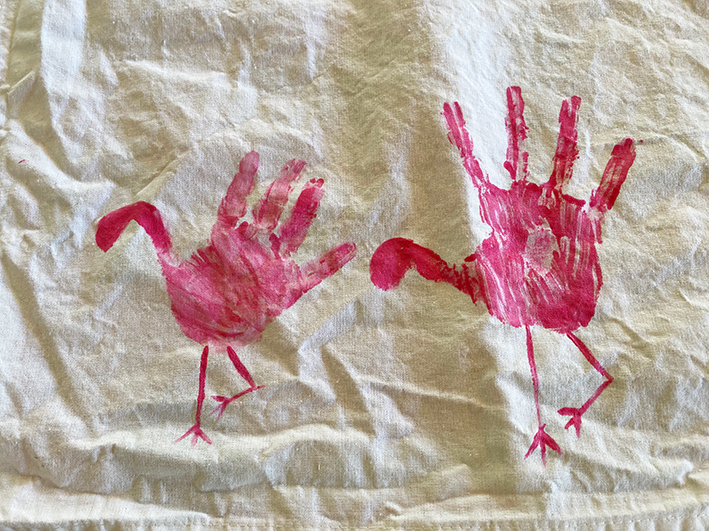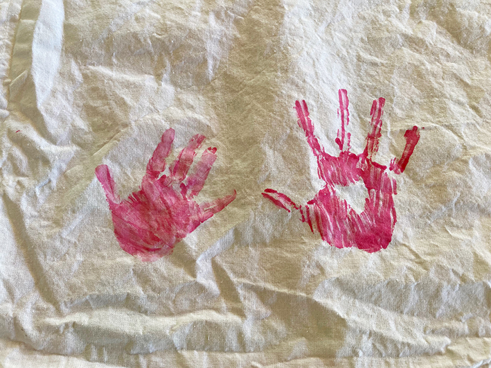 - Zuerst beide Handabdrücke auf das Geschirrtuch pressen.