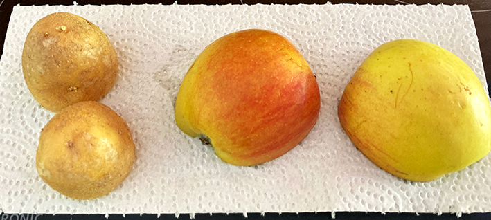 - diverses Druckmaterial wie WC-Rolle, Apfel, Kartoffel, usw.