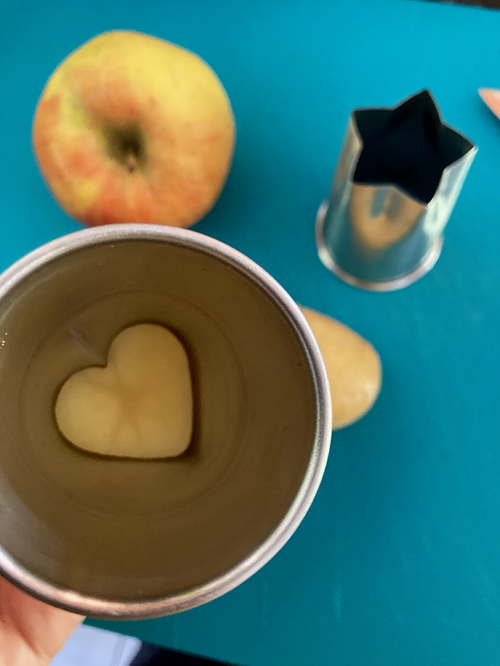 Aus der Kartoffel haben wir mithilfe einer Keksform ein Herz ausgestochen und ausgeschnitten.