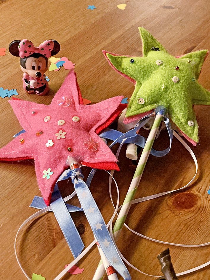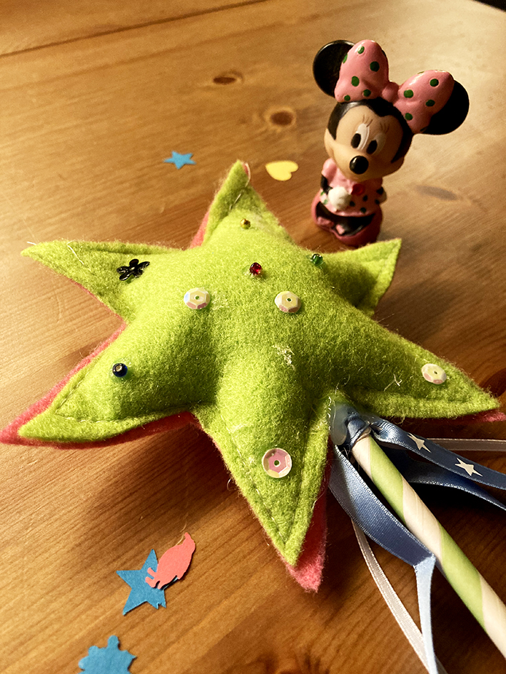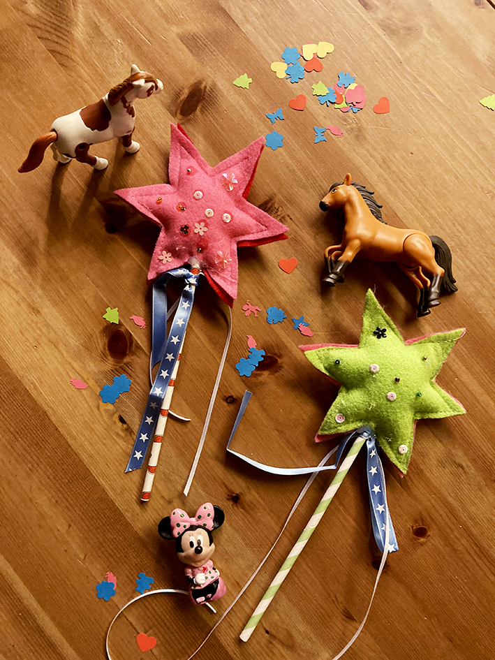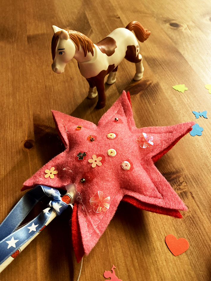 Für meine Mädels habe ich mich seit langem mal wieder an die Nähmaschine gewagt um Feen-Zauberstäbe zu nähen. Diese sind ganz einfach und ziemlich schnell gemacht.