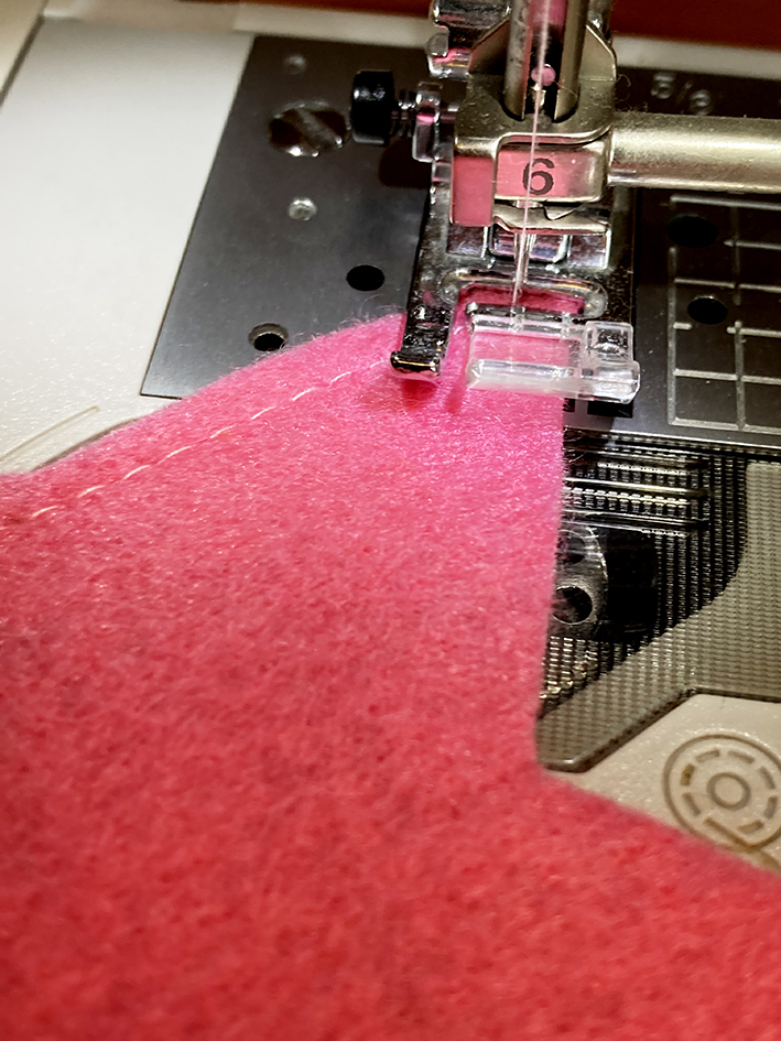 Mit der Nähmaschine den Kanten entlang zusammennähen. Ein Stück, wo am Schluss der Strohhalm reinkommt, offen lassen.