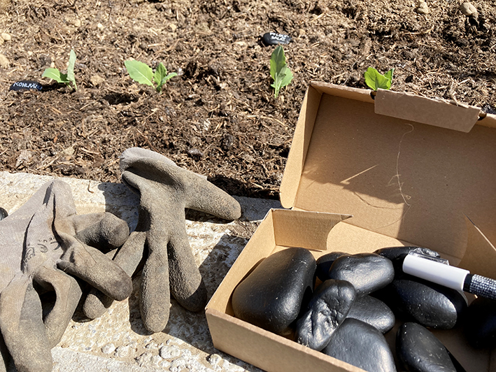 Beim ansäen denke ich nämlich jeweils, dass ich in zwei Wochen noch weiss wo ich was angesät habe… nun ja, meistens weiss ich nach ein paar Tagen schon nicht mehr ob ich wirklich angesät habe und was oder ob ich nur wollte… deshalb habe ich dieses Jahr endlich die perfekten «Gartenschilder» für mich: beschriftete Steine!