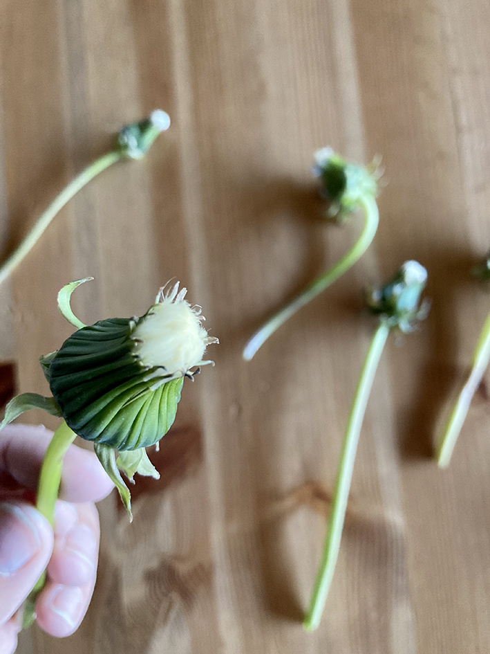 Verwelkte Löwenzahnblumen die kurz vor dem aufgehen sind sammeln und mit einem Draht in ein Stück Sagex oder Knete stecken. Warten bis sie aufgehen.