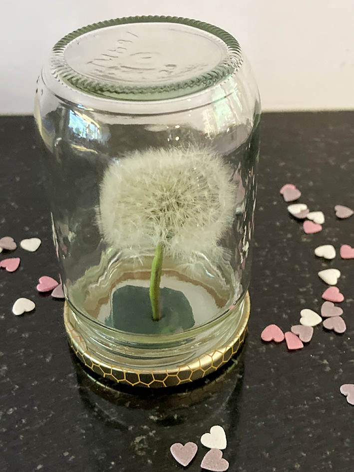 Glas zuschrauben – fertig ist die Pusteblume im Glas!