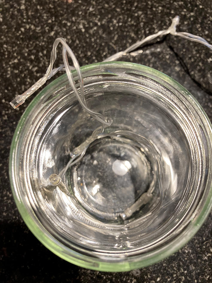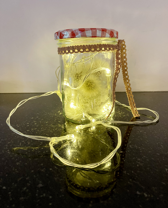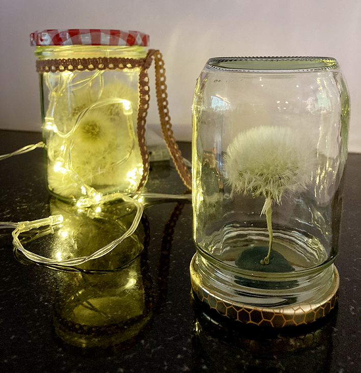 Pusteblumen im Glas mit Lichterkette