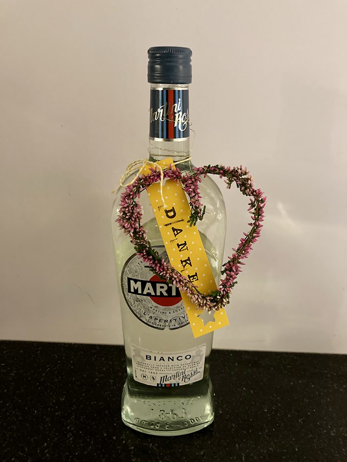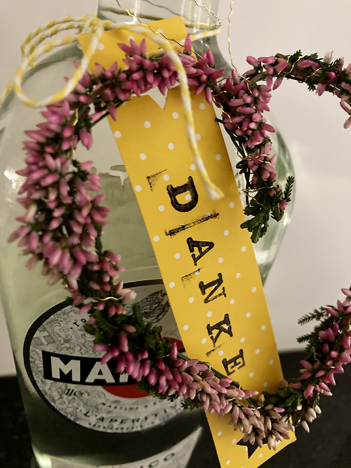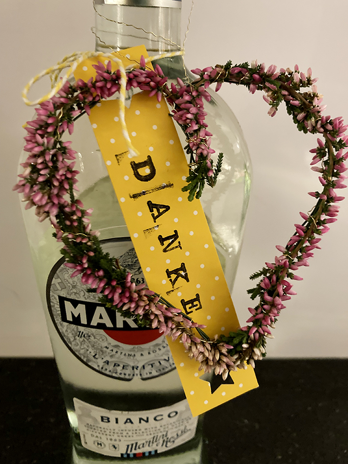 Je nach Grösse kannst du es nun ans Fenster, oder wie ich an eine Flasche hängen mit einer gestempelten Danke-Karte, als kleines Geschenk.