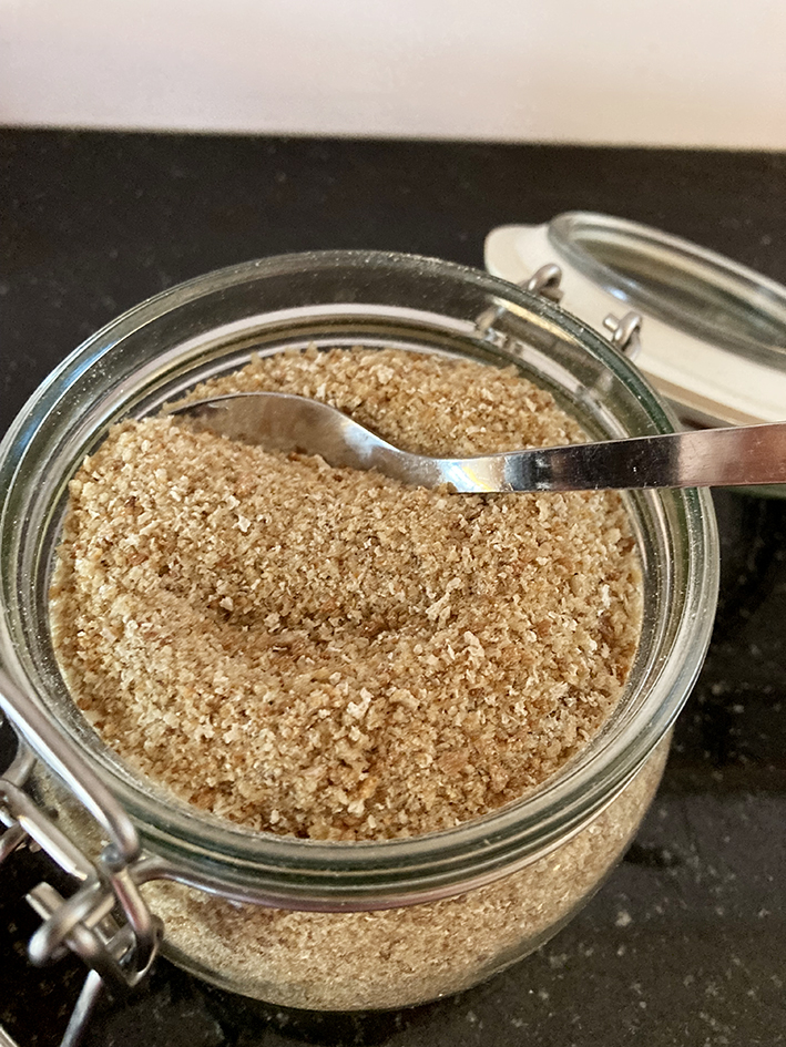 In ein sauberes, trockenes Gefäss geben – fertig ist das Paniermehl.