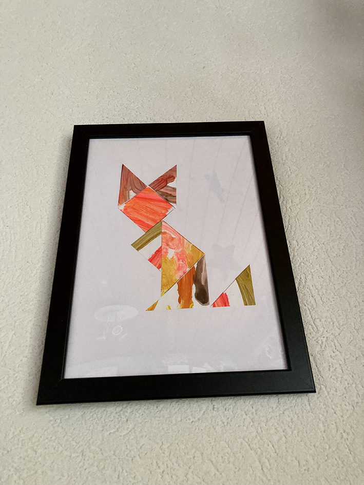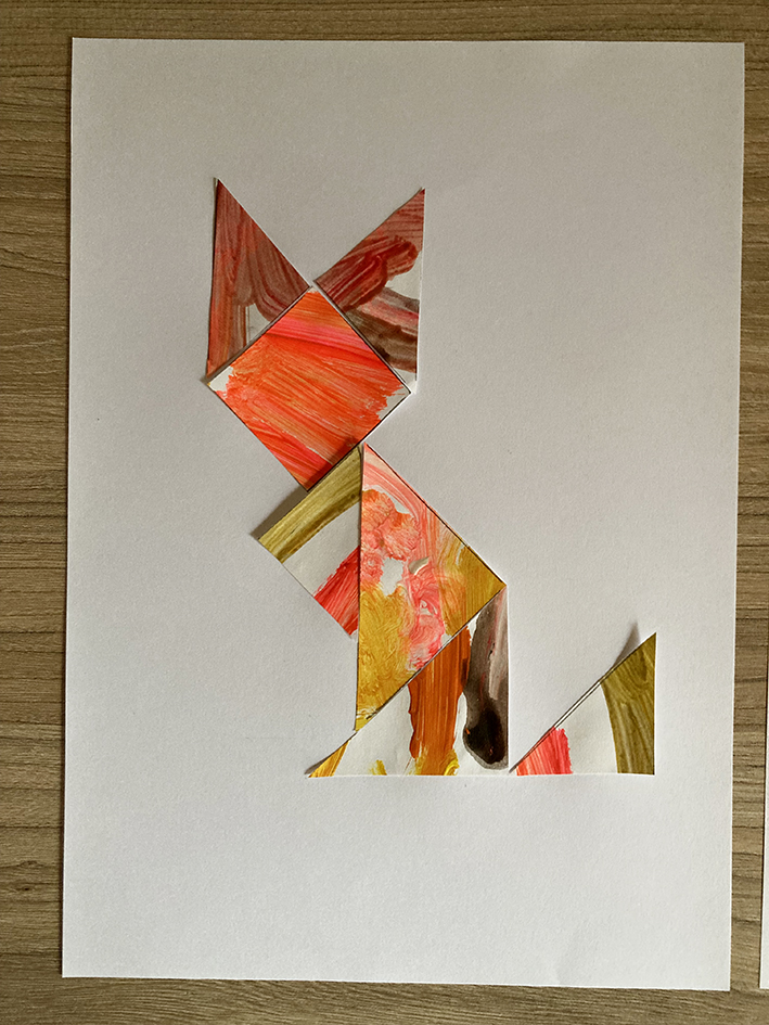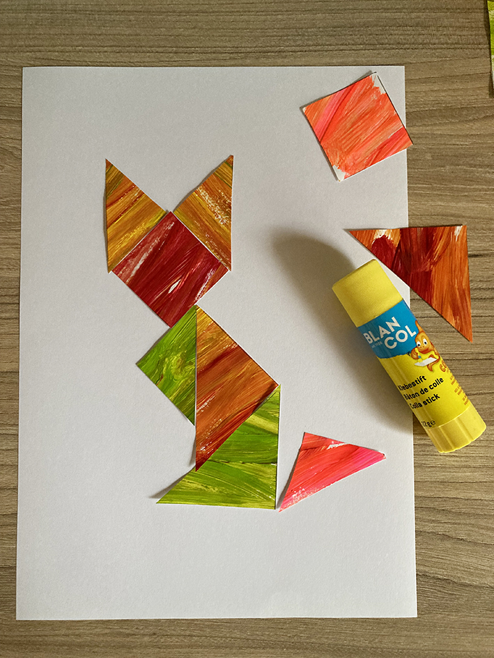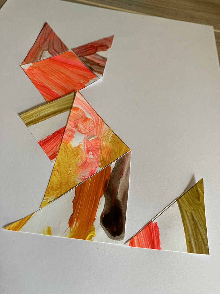 Malt dein Kind auch super gerne? Gerade wenn es noch jünger ist und noch nichts wirklich erkennbares auf dem Bild gemalt wird, eignet sich das Bild super um selber ein Tangram daraus zu machen.