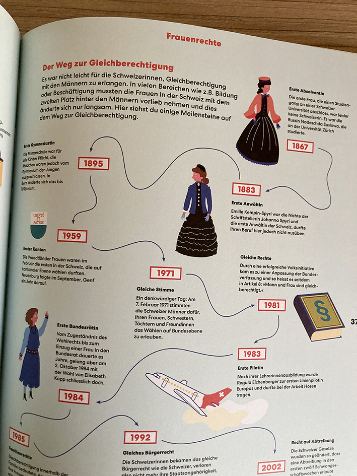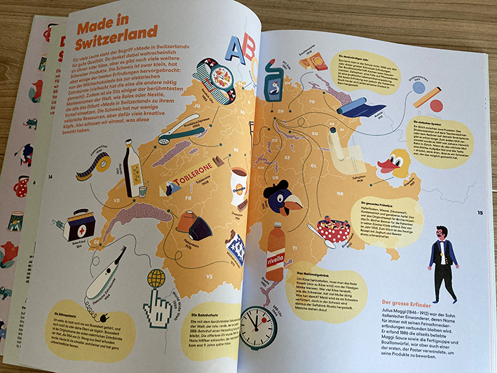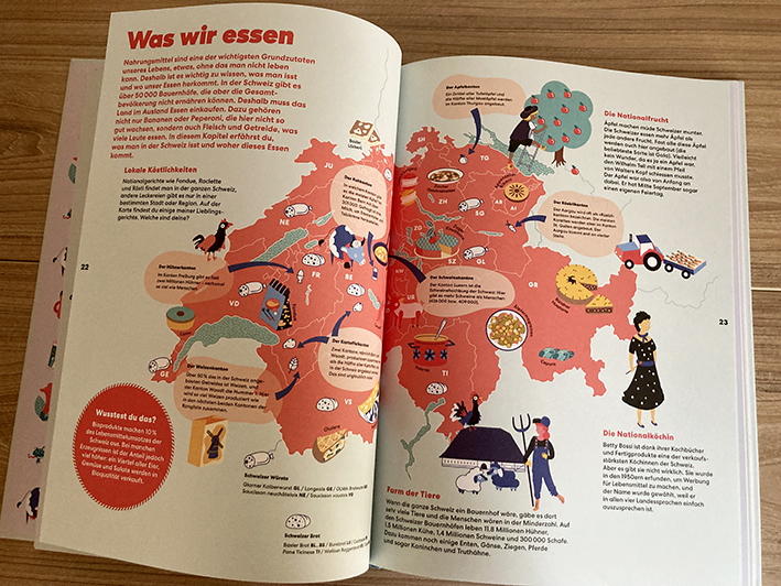 Schon mal was vom Röstigraben gehört? Wusstest du, dass die Schweiz acht Mal in Deutschland Platz hat … aber 232 Mal in China? Was essen die Schweizer? Was unternimmt die Schweiz gegen den Klimawandel? Was ist alles «Made in Switzerland» und wie ist das mit dem Frauenrecht in der Schweiz?