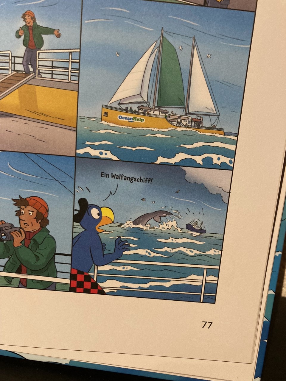 Er trifft auf Delfine, bastelt ein Floss, strandet auf einer einsamen Insel wie Robinson, hilft einem Schwertfisch, der dann wiederum ihm hilft, findet einen Schatz, sieht fliegende Fische und wird gar hypnotisiert. Er lernt warum Riffe sterben und trifft natürlich auch auf einen Hai…