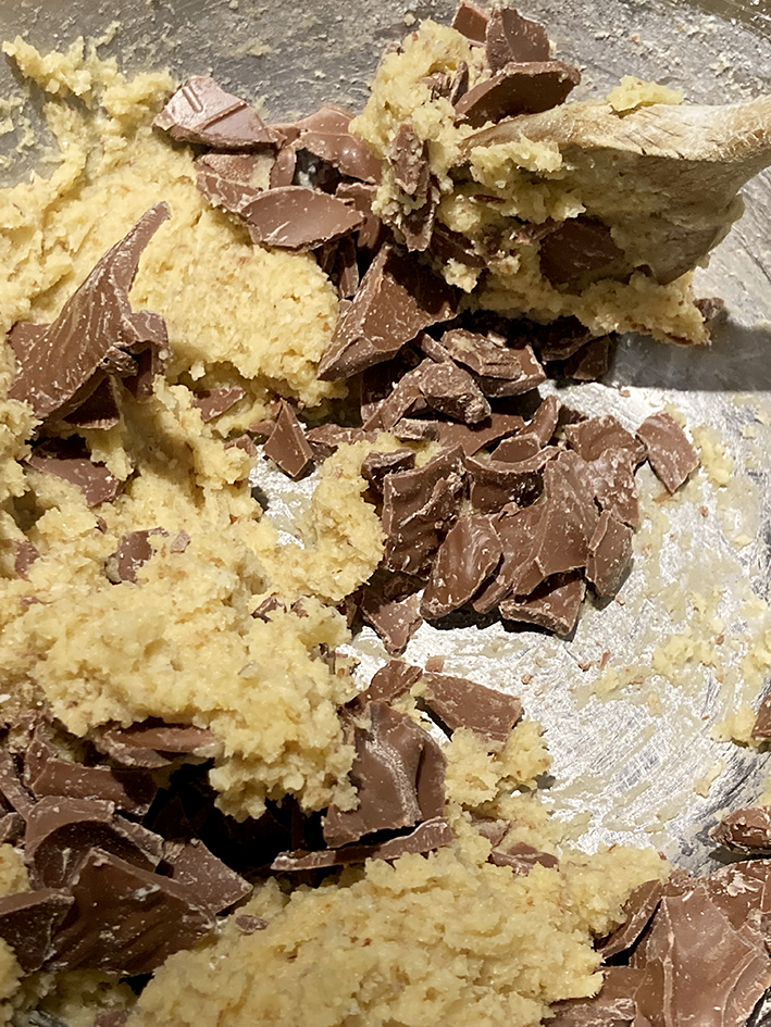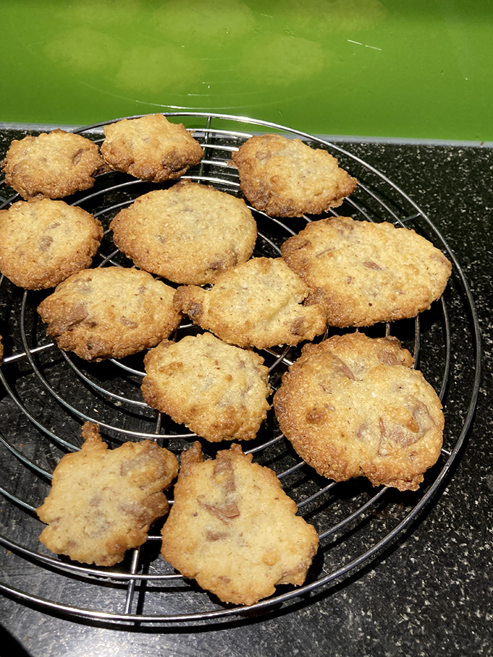 Und aus dem Winter-Teil haben wir Cookies gebacken und anstatt Schokowürfel einen Osterhasen zerkleinert… auch sehr lecker und eine tolle Resteverwertung von Osterhasenschokolade!!!