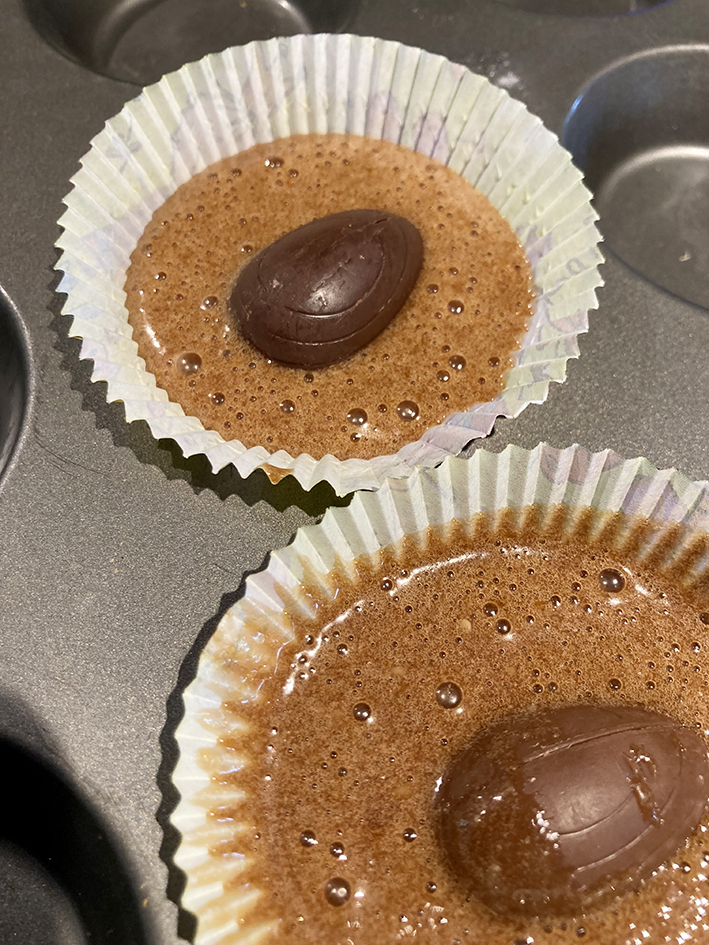 Wir haben aus dem Frühjahr den leckeren Schokokuchen in Form von Muffins gebacken und in die Mitte jeweils ein Schokoei gesteckt, so gibt es einen leckeren, flüssigen Kern! Ausserdem sind wieder ein paar Osterschokoeier weg…