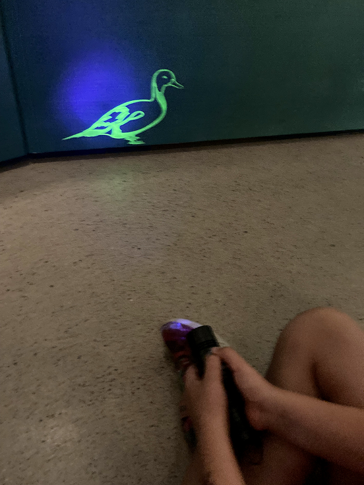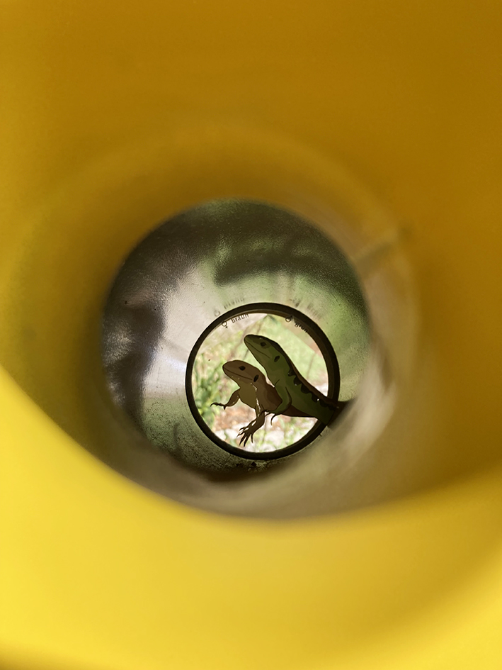 Dasselbe Draussen, dort wird allerdings nicht mit der Taschenlampe, sondern mit einem Fernglas nach den gesuchten Tieren Ausschau gehalten. Gegen Depot der ID können Ferngläser ausgeliehen werden, man kann natürlich auch sein eigenes mitnehmen.