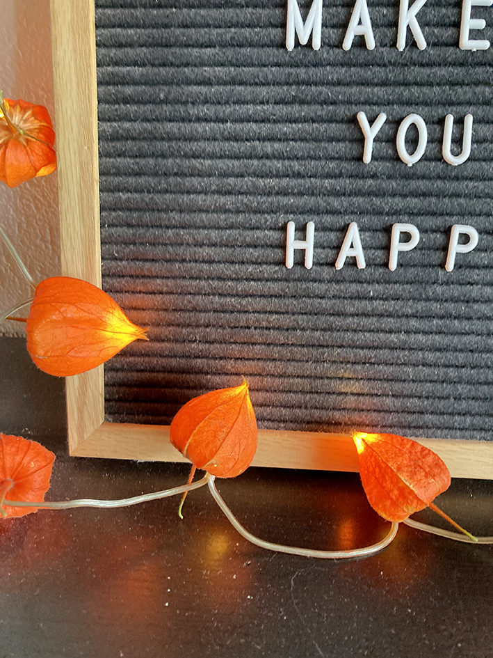 Ein toller Hingucker der ganz einfach zu machen ist, ist diese Lichterkette aus Lampionblumen.