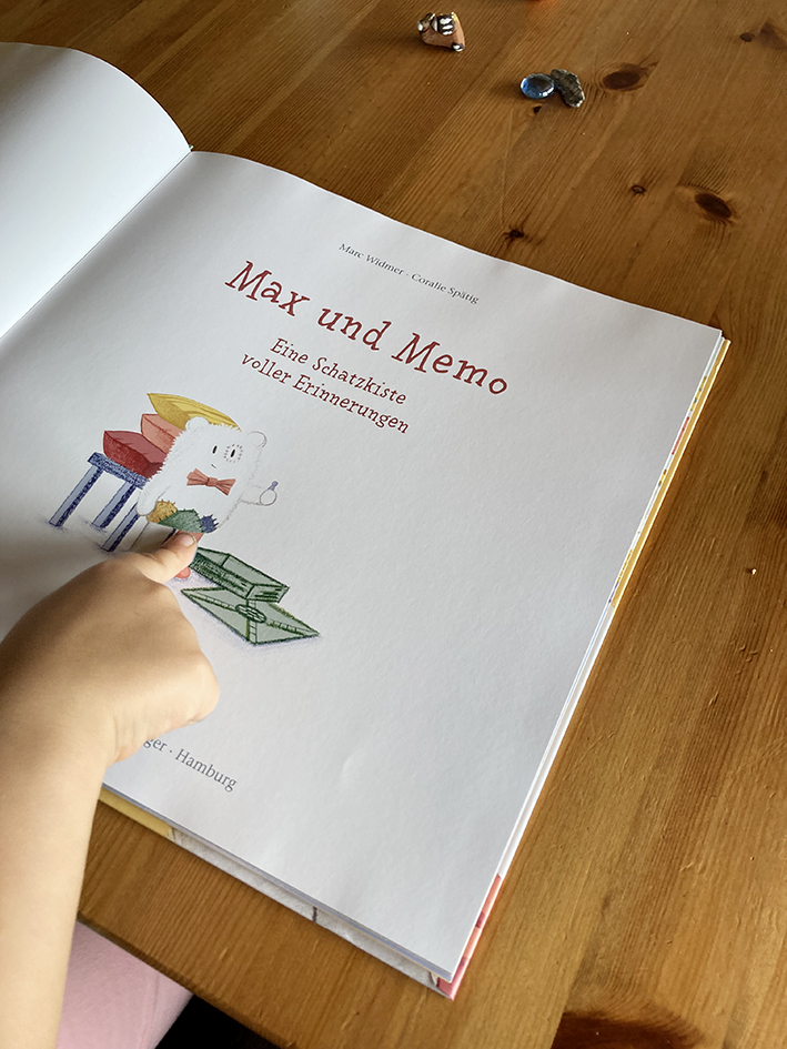 Da sein Papa ja noch schläft, hat Max Zeit Memo zu zeigen was alles in den Taschen seiner Lieblingshose versteckt ist. Während er Memo von jedem Gegenstand die Geschichte dazu erzählt, taucht er in die Erinnerung an die schönen Momente ein… bis Max‘ Papa ihn ruft.