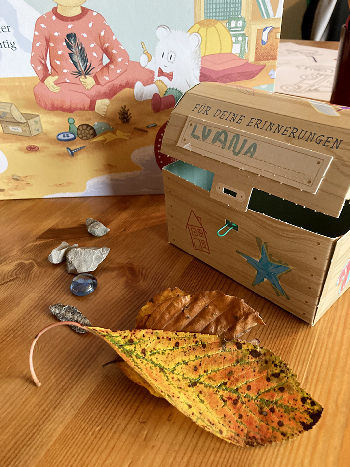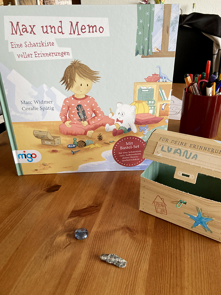 Plötzlich ist Memo weg, stattdessen steht eine Schatztruhe mit seinem Namen da, für seine Hosentaschenschätze.